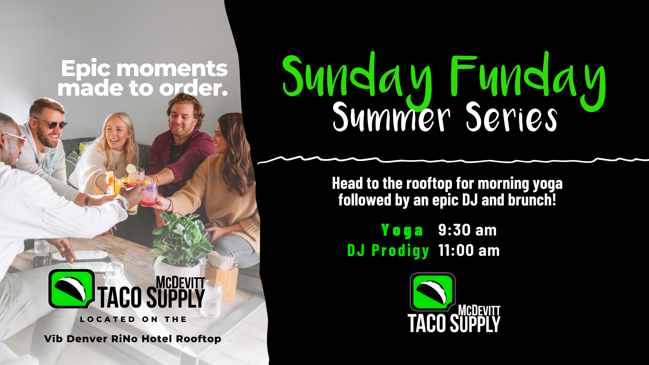 This Sunday, find your zen amongst the mountains with yoga on the rooftop. Class starts at 9:30 am followed by an epic DJ set by DJ Prodigy and brunch at 11:00 am.